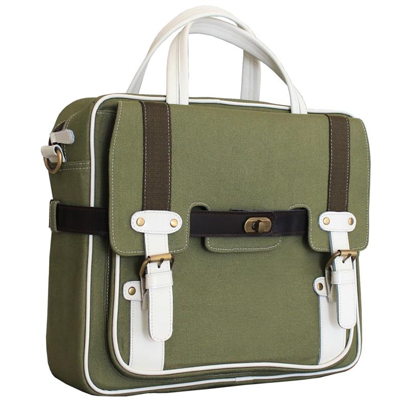 Green Espadrille cotton canvas body White and Dark Brown Genuine cowhide leather Brass metal accessories Black cotton lining Structured with foaming on all sides