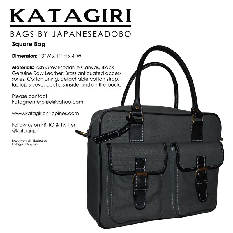 The JapaneseAdobo Square Bag gives a structure finish at its full function. A type of bag that keeps your stuff organized with its square finish. Perfect to fit a medium laptop with its sleeve inside, the bag comes with a detachable cotton strap, pockets and compartments inside, on the back and in front.