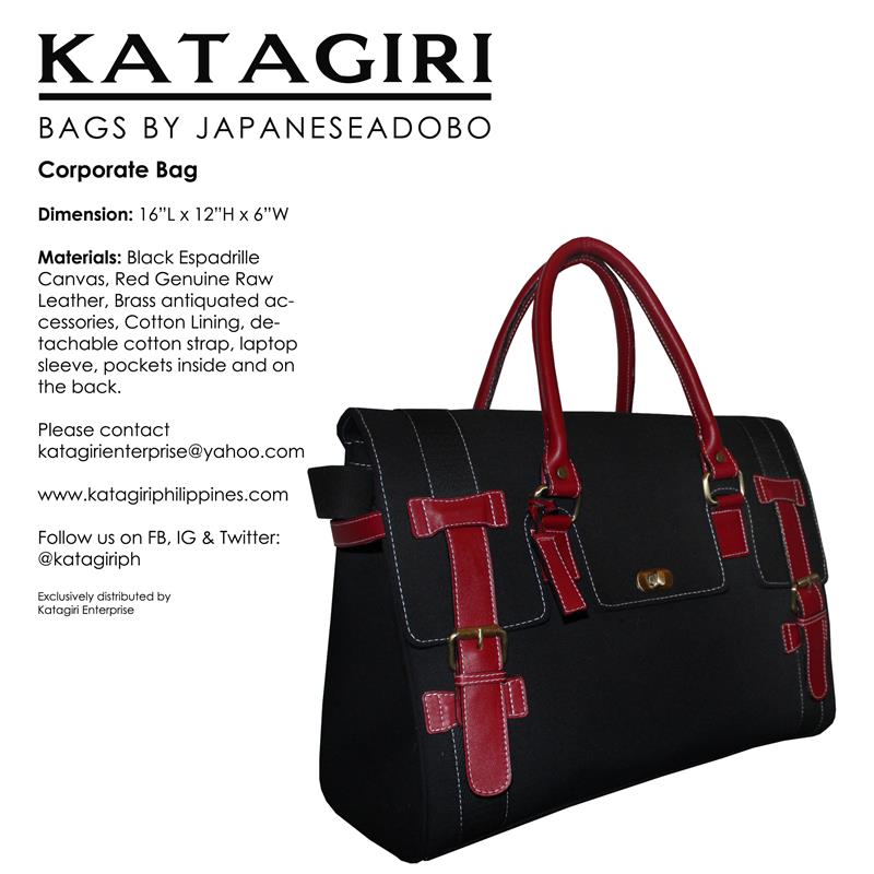 The first ever design made under the JapaneseAdobo line of bags made of structured espadrille cotton canvas with genuine cowhide leather trimmings. One of the best sellers and remained to be the most patronized designs. Available in three (3) sizes: small, medium and large.