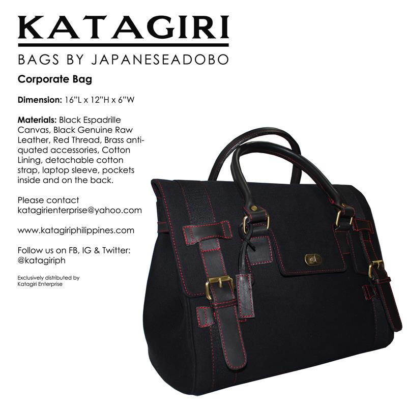 The first ever design made under the JapaneseAdobo line of bags made of structured espadrille cotton canvas with genuine cowhide leather trimmings. One of the best sellers and remained to be the most patronized designs. Available in three (3) sizes: small, medium and large.