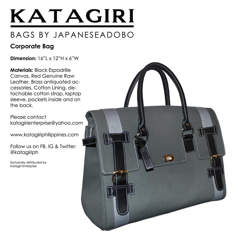 The first ever design made under the JapaneseAdobo line of bags made of structured espadrille cotton canvas with genuine cowhide leather trimmings. One of the best sellers and remained to be the most patronized designs. Available in three (3) sizes: small, medium and large.